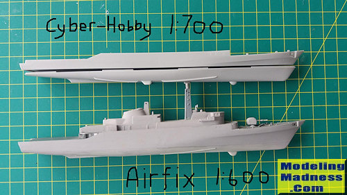 It's worth noting that other reviews judged the kit based on measuring the hull and the helicopter, then concluding that all the parts were 1/700 on a 1/600 hull. Actually, the deckhouses and major parts match the Airfix kit too, pretty closely. So if you leave the helicopter off, you might be ok.