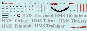 You can build any one of the seven in the class as both prop and propulsor is included also the decals for the names that attach to it's sail are also included; apparently the RN would rather it's boats have their names on them instead of pennant numbers.
