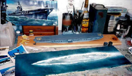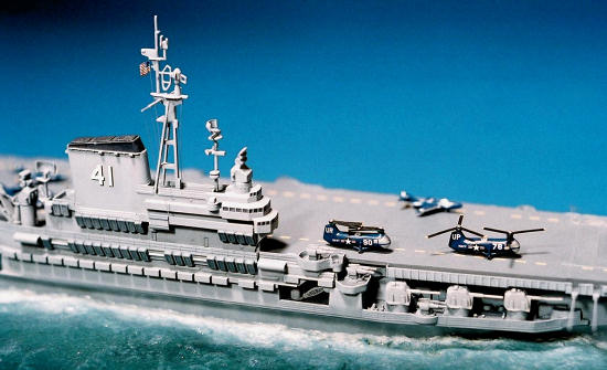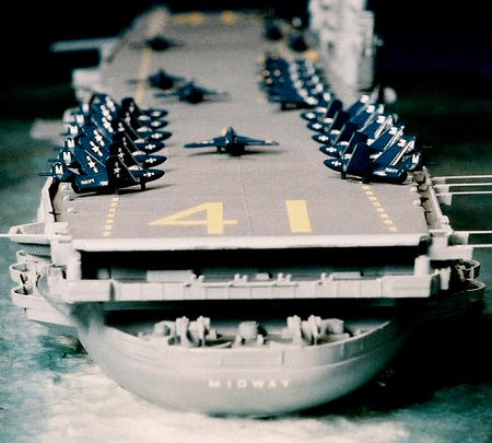 I refrained from any weathering as the Midway class carriers were the pride of the U.S. Navy of the time and were carefully maintained. Besides, it would have slowed things down, and this build was really cookin’ along!