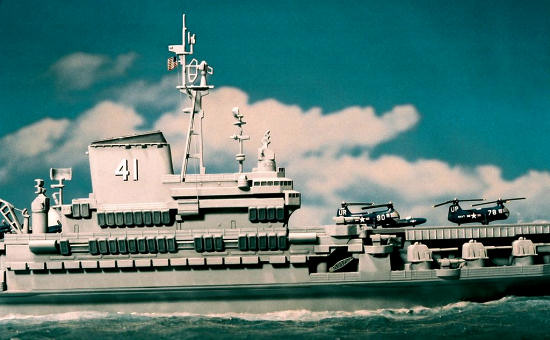 My favorite aircraft were the two Piaseki HUP-2 Retriever helicopters. Molded as single pieces with folded rotors, I painted and decaled them along with the rest of the aircraft. They looked good mostly, but those heavily molded, pole-like rotors really bugged me. They looked less like folded rotors than a clumsy, over thick attempt at a single blade. When my twelve year old daughter actually asked me what had happened to the other blades, I finally gave in and replaced them with thin Evergreen sheet plastic strips. Yeah, I was disregarding my own “no scratchbuilding” rule, but it only took a few minutes and they looked SO much better!