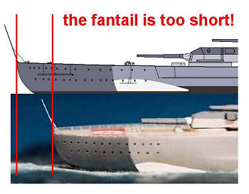 Worse, the funnel, superstructures and aft turrets are placed just a little