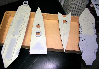 sprayed the deck pieces with Tamiya Deck Tan. For the main hull color, I used Testors Model Master FS 35237 Medium Grey which is a very good match for Royal