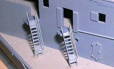 While I did not use a PE set specially designed for the kit- I did use PE extensively by raiding my stash of 1/350 PE leftover from past models. All inclined ladders were replaced with PE and of course railing was added around the ship.