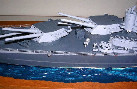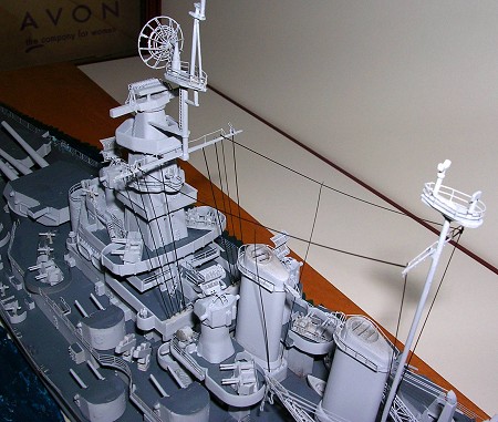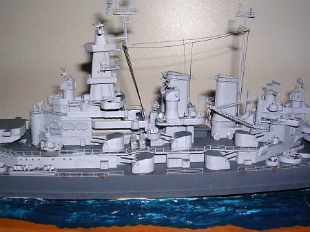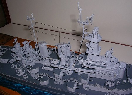 With most of the painting done- it was back to construction. Scores of ready use ammo lockers were attached as well as very thinly rendered armor shields. The 40-mm mounts were then added followed by other bits like the PE stern crane. Next it was time to attach the superstructure parts.