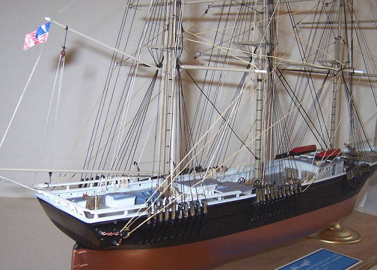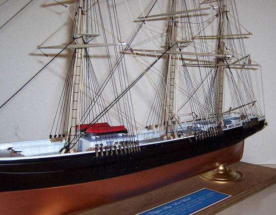 One of the first true clipper ships-- built in 1846 by Smith & Dimon, New York, to the design of John W. Griffiths. Dimensions 170'3"×33'11"×19' and tonnage 907 tons. The figurehead was a Chinese dragon with an open mouth and a partly coiled tail. The hull was painted black with a contrasting sheerline strip at deck level and the spars were all bright work.