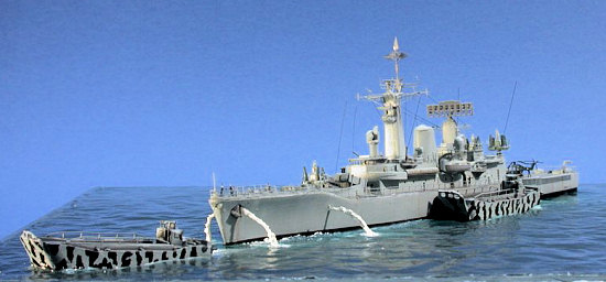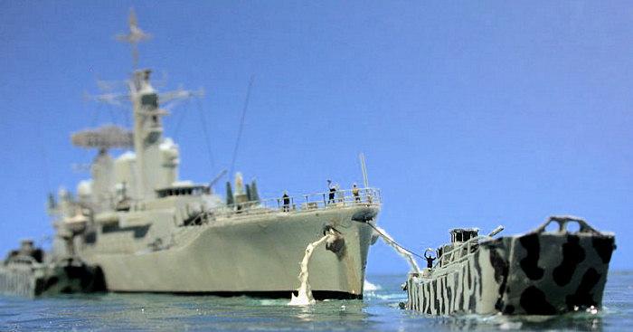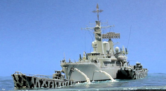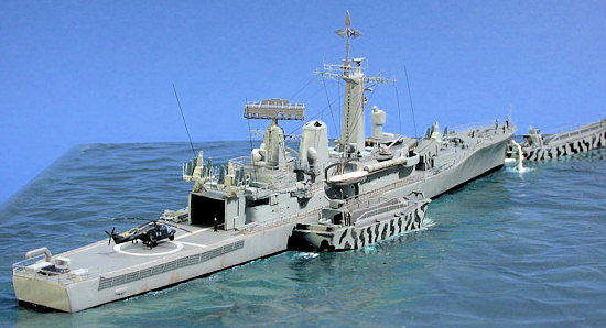This project was built from 25 September to 6 October, 2007, during a week of holidays without much else going on. I had less fun with it than with the Type 21, as the kit is inferior and I had too many issues with lack of information and scale discrepancies to be really comfortable. Nonetheless, it was fun enough and I like the rather uncommon sight of a frigate towed by LCU´s! The most welcome addition to my techniques is the stressed skin effect as it is frequently visible on modern, unarmored warships.