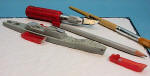 After drying, I mounted the four vessels to the base using acrylic gel, added water spouts made from stretched clear sprue and acrylic gel, a towing cable made from stretched sprue, did some more touchups and called it quits.