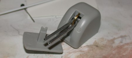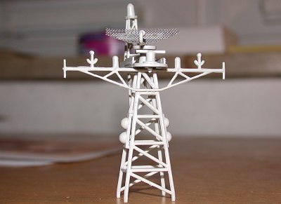 in front of the shipīs aft mast from brass rods which I soldered together.