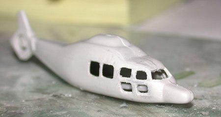 I had looked up pics of the shipīs helicopter and detailed mine accordingly. I drilled out all the windows and filled them with Kristal Kleer after painting. I also made new rotor blades from thin styrene, thinned out the stabilizers and added exhausts from metal tubing. I added some scrap decals and I was done.
