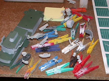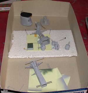 The hull done, I started with the various deckhouses and radars and gun turrets and the dozens of other subassemblies. I decided for each separate thing how far I had a mind to go and tried my best.