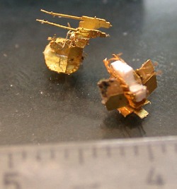The filament streched in this way will lovingly shrink upon exposure to heat. Jim recommended incense sticks towards matches as you can read frequently. He pointed out their continuous emission of heat as their main advantage. So I gave them a try. My background as a dentist prompts me to use as much dental equipment as possible in modeling, so I´m used to a dental modeling tool, a PK Thomas #1, to be excact, for this task. This steel tool is heated in a flame (I have a handy spirits burner) and then cautiously approached to the sprue. (Normally it is used to apply wax in modeling dental structures in wax-ups and crown and bridgework.) I wasn´t used to the continuous heat of the incense stick, let alone the heat in the smoke. I soon realized that the smoke could easily cause the sprue to snap. In the end, I returned to my method with the waxing instrument just because I´m used to it. But I have to admit that the incense stick vastly improved the atmosphere over my workbench!