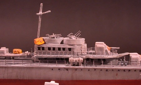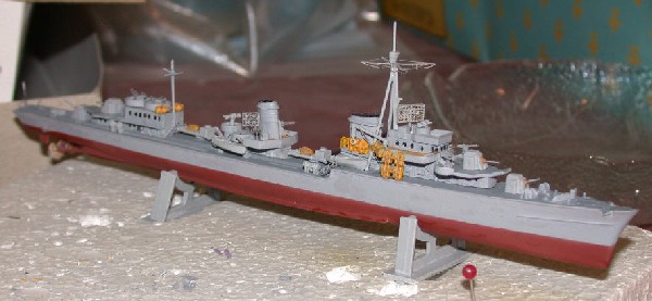 And so my destroyer sat for a while. Lacking weathering, railings and a