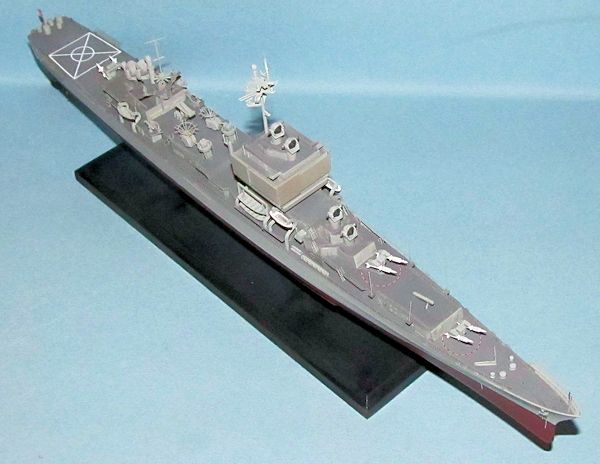 vertical surfaces of superstructure parts and guns were painted haze grey as