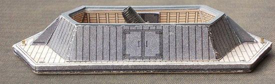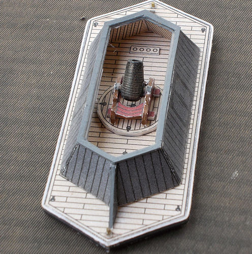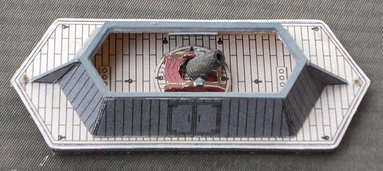 and the weapon was surrounded by a thick open-topped 6-sided superstructure.