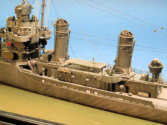 and the many AA guns using a mix of kit parts and GMM PE. The masts were