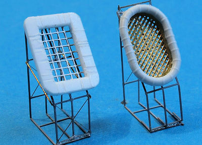 A quite visible feature of these vessels were huge racks for large liferafts. I scratchbuilt both the racks and the rafts using scrap PE, styrene stock and PE mesh.