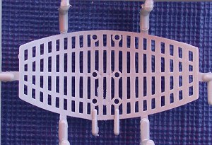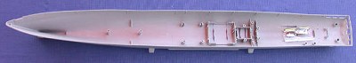 The kit is designed for radio control. Hence, mountings for antenna, batteries, receiver, engine, rudder servo and so on are integral to the hull, and the rear part of the superstructure is to be built removable to access the inside. The model is at this scale fairly large with a length of 713.5 mm and a beam of 75 mm. Yet you have only about 20 mm from the waterline to the deck, and even less space at the stern where there´s a large open area under the helipad for some towed sonar device. Hence, Trumpeter chose to put clear parts into these openings. All other windows and bulleyes have to be painted on or replaced by PE.