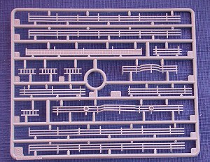 one silver gray sprue for the stand, a clear spure, a black sprue with