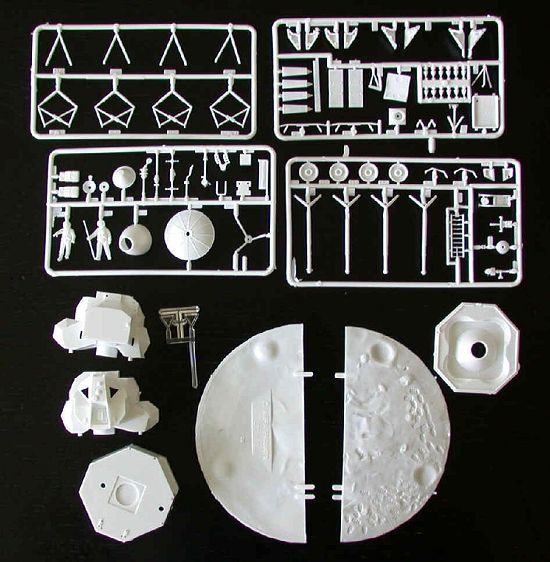 Yet another flashback to 1969 when I devoured anything connected with space, namely the real Apollo program and what SF shows I could see on TV (plus any available Godzilla movie ;-). I recently discovered that the Airfix kit of the Lunar module could be had for a reasonable price at my favorite mailorder shop, so I laid my hands on it. I had fond memories of this kit from my youth, especially the „moon surface“ base and the little astronauts. Given the astronomical prices collectors pay for other Airfix kits, it looked like a bargain. BTW: I´ve never heard of a swap meet around here, so I have to make do with prices at ebay or available shops – sigh.