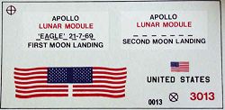 two inscriptions for the base plate: One for LM-5 „Eagle“ of the Apollo 11
