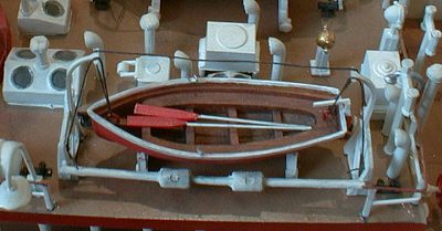--Adding oars and rudders to the lifeboats, made from brass wire and Evergreen sheet