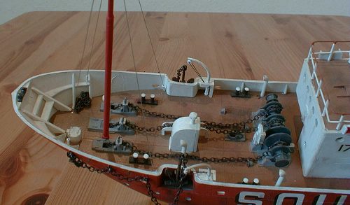 What perplexed me most when looking at the kit was the lack of any propellers. Well, strictly speaking, a lightship moored at a specific site doesn´t need engines and props to go anywhere, but – well, I wouldn´t feel quite comfortable sitting aboard a ship that´s designed to withstand the fiercest storms but is solely held by some anchors, without any means for adjusting its bearing or changing position. I visited a
