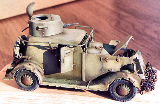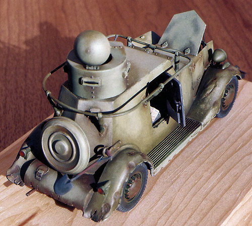 Paraphrasing from the page one portion of the kit instructions, (The brief history, printed in Russian-English-German) it states that in the 1930s the Soviet Union, and other countries besides, used civilian light vehicles for reconnaissance sorties, but it was soon was apparent that combat environs made armor plating and automatic weapons necessary for these vehicles. Circa 1936, in light of the previously designed vehicles of this genre; i.e. Ba-3, Ba-6, etc., the Ba-20 light armored vehicle was developed on the chassis of the civilian GAZ-M1 automobile. Thin armor plates were welded to the body and the DT tank machine gun was installed. The gunner also performed as commander. The Ba-20 in production for five years, with minor upgrades was to become the most widely operated armored car of the Soviet Army. And it's first combat role was in 1939 against the Japanese, in Mongolia.