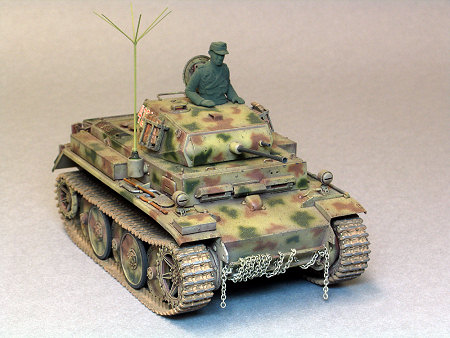 The tracks are the ‘rubber band’ type – very good detail nonetheless and fine from the box but….I had a set of metal Fruilmodellismo replacements to try out. These are the newer style Fruil tracks – each link is joined by an individual track pin sourced from a coil of wire included with the set. I made up 90 links each side and used the adjustable rear idler feature on the kit to later achieve the right level of sag. These tracks really are absolutely beautiful - but pricey. Having said that, nothing sags better than a set of articulating metal tracks and the weight certainly helps to anchor the little Panzer.