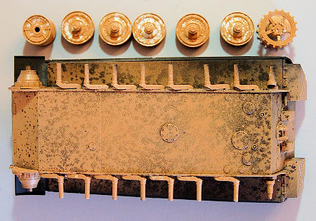 assemblies separate, the road wheels, which did not have rubber rims, are