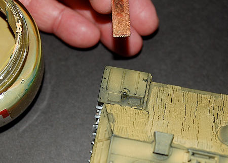 Just as I did with the Tiger 1, I mixed in yellow ochre to a patching compound,