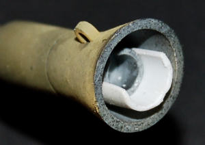 The bottom of the barrel at the base is too scrawny, so I beefed mine up with a semi-circle of tube styrene.