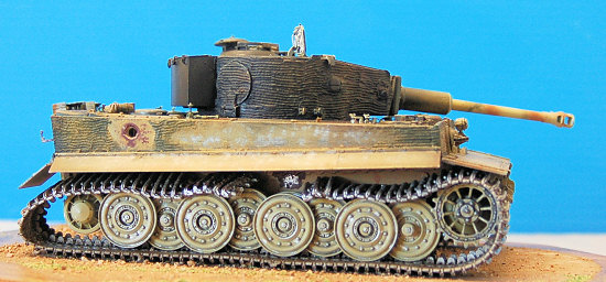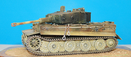 The Tiger tank is certainly the iconic main battle tank of the German army in World War Two, and is still one of the most recognizable pieces of battlefield equipment ever created. Personally, I think that the resourcefulness of the Sherman crew in outwitting the Tiger by the use of obstruction and dust to take out a tank much heavier worth modeling, even though I had to damage the beautiful model.