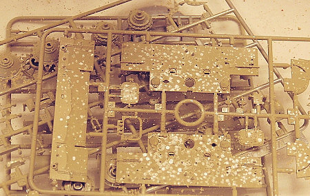 the sprues. For the bottom pieces, such as the road wheels and axles, I used