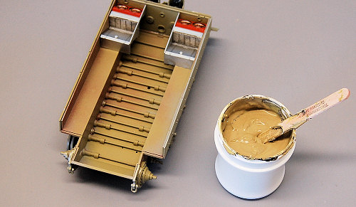 given a light wash of India ink and water. I did not glue on the road wheels at