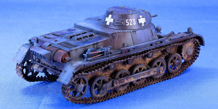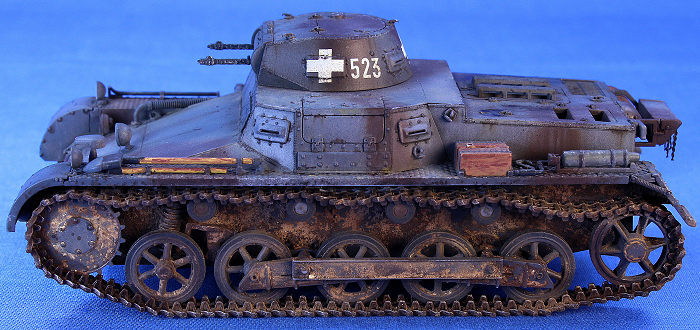 The Panzer I evolved into the Wehrmacht’s first mass-produced tank. It was first used in combat in the Spanish Civil War by the Nationalists where it was found to be poorly armored – it soon fell out of favor when captured Soviet T-26s became available. When World War II broke out however it and the Panzer II formed the backbone of German armored units and both tanks were heavily committed in the Polish and French campaigns. It was retired from front-line units soon after, but its chassis would soldier on in several other forms including a 4.7cm gun-armed tank destroyer, a self-propelled howitzer, flakpanzer anti-aircraft vehicles, and various supply and tank-driver training vehicles.