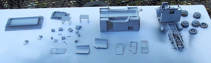 kit comes in a tray and lid type box. Inside is 7 light tan plastic