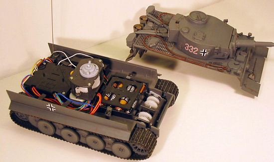 third channel to control a motor and gearbox for turret rotation. The tanks in