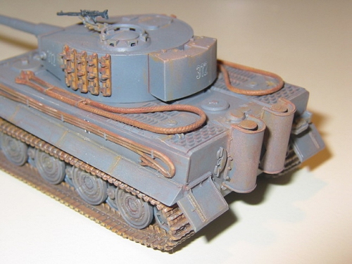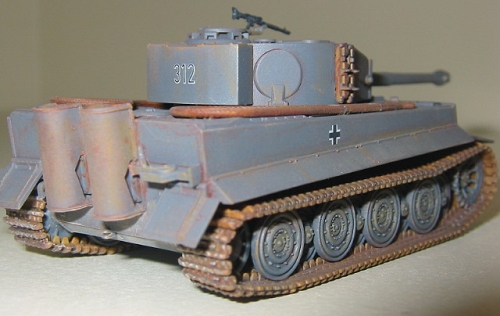 No surprises or difficulties were encountered. The hull parts all fit together very well, with no need for filler. The suspension parts are molded to the lower hull sides. After assembling the hull, I airbrushed the lower hull with Panzer grey- it is easier to paint these areas of the tank before the tracks and road wheels are in place.
