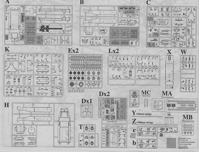 Letter W is the clear parts for vision blocks etc. (16 parts), Letter X is