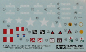 Decals are provided for 4 Carriers, one of the 6th Armored Division in Tunisia, and options for the Guards Armored, 7th Armored, and 3rd Infantry Divisions in the N.W. European campaign. All are overall green.