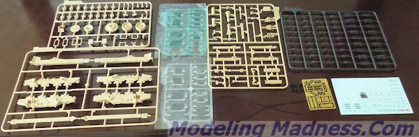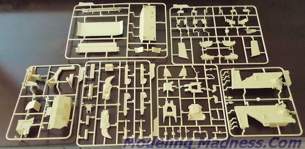 24 sprues packed tightly inside. These include 5 black ones (Tracks) with the