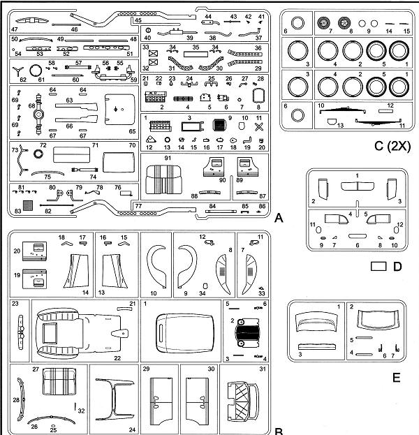 The sprues are as follows: Large tan letter A parts tree holds: the