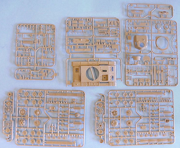 As is standard with the Tamiya small armor, the lower hull is diecast metal. Some modelers have expressed a dislike of this multi-media production, since it requires plastic parts to be attached with cyanoacrylate glue, but for my money I like the heft this gives these small models, resulting in their being less likely to get moved around on the shelf and thus unlikely to get broken as easily as some of the other small armor out there.
