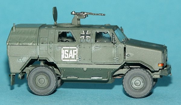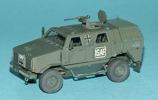 With the end of the cold war the tasks of the German armed forces changed: No more large scale conventional warfare in central Europe with huge tank and mechanized infantry forces but small scale peacekeeping and police force missions in places far away from Germany. Peacekeeping missions like in Somalia, Bosnia or Kosovo required new types of vehicles – more suited for the 'asymmetrical' threads (mines, snipers), easy to maintain, cost efficient and air-transportable - something to fill the gap between the 'Wolf' (Mercedes G-class) unarmored light truck and the Tpz1 'Fuchs' APC. So the Krauss-Maffei-Wegman company came up with a newly designed vehicle based on the Unimog 4x4 light truck which is already in service with the German armed forces.