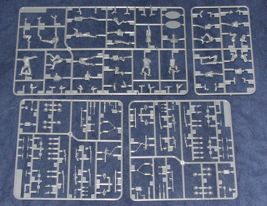 The figures are nicely molded, and most of them are made up from 4-8 pieces, not counting weapons. In addition to the figures themselves, there is a large collection of infantry accessories—helmets, canteens, entrenching tools, packs, pouches, weapons, etc..