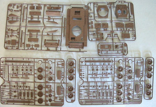 This new kit has many of the same assembly sequences, and at least one similar mistake to the large kit, in that the upper portion of the tracks should not sit atop the road wheels as they do. Those who are concerned with accuracy will have to modify the parts A19 and A24 so the tracks will be tensioned properly.