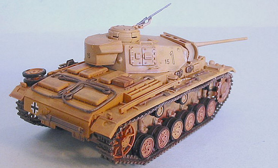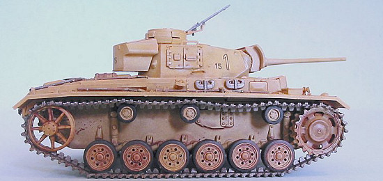 With an armor model, painting and detail finish is the main area of work. A modeler should “choose the story” they want to tell, and tell it in the finish of the model. In this case, I wanted to do a Panzer III serving in the Afrika Korps around the time of the Battle of Kasserine Pass.