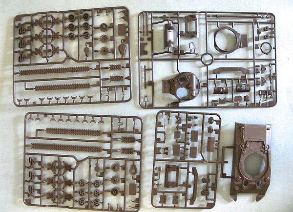 The kit consist of 137 parts in olive drab plastic and a lower hull in cast