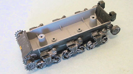 Fitting the track is easy. The upper run attaches to the pin on the front return roller, which insures everything lines up correctly. The links should be glued to the return rollers, idler wheels and a couple of road wheels to ensure they stay in place. The small pin marks on the inside of the tracks are not noticeable once the tracks are assembled.