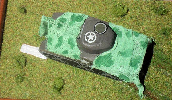 ‘tank’ onto the ‘grass’ and attached pieces to replicate the anchor pegs.